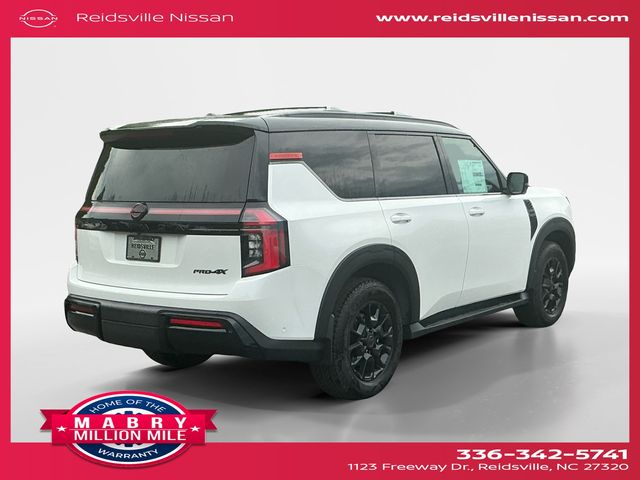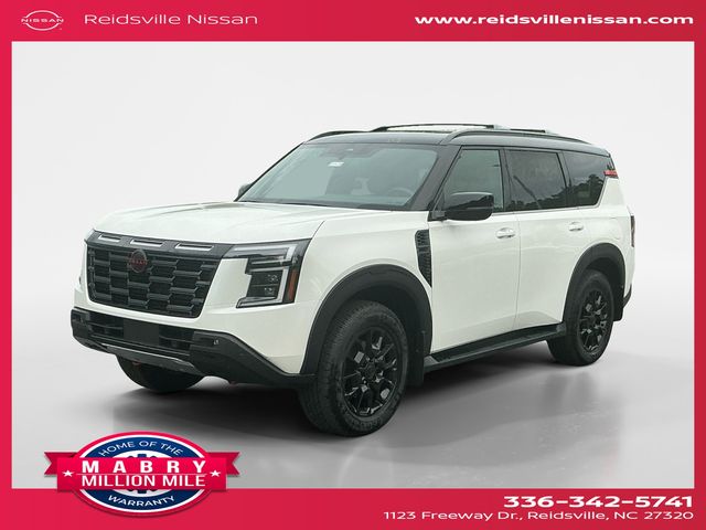 Aspen White Tricoat/Super Black 2025 Nissan Armada PRO-4X 4WD 9-Speed Automatic 3.5L DOHC 4WD, ABS brakes, Active Cruise Control, Alloy wheels, Electronic Stability Control, Front dual zone A/C, Heated door mirrors, Heated Front Bucket Seats, Heated front seats, Illuminated entry, Low tire pressure warning, Navigation System, Power Liftgate, Remote keyless entry, Traction control.