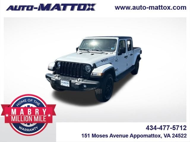 CARFAX One-Owner. BACKUP CAMERA, BLUETOOTH, PUSH BUTTON START, AWD/4WD, This vehicle is located at Auto-Mattox. 151 Moses Avenue, Appomattox, VA 24522., Gladiator Willys, 4D Crew Cab, 4WD. Bright White Clearcoat 2022 Jeep Gladiator Willys 4WD 8-Speed Automatic 3.6L V6 24V VVT