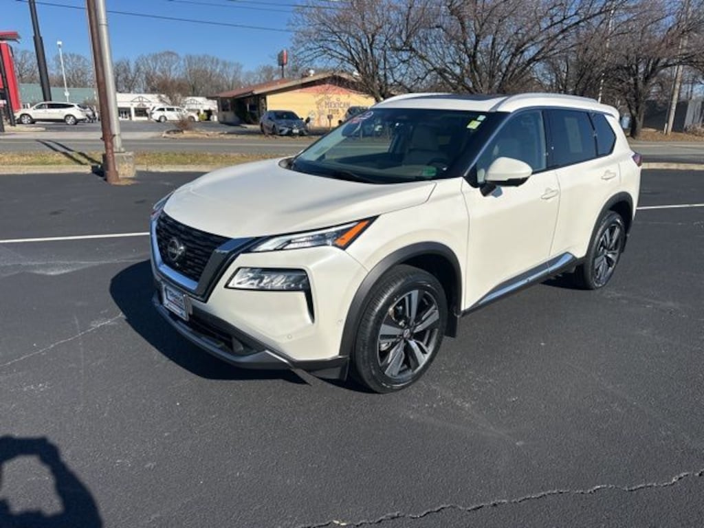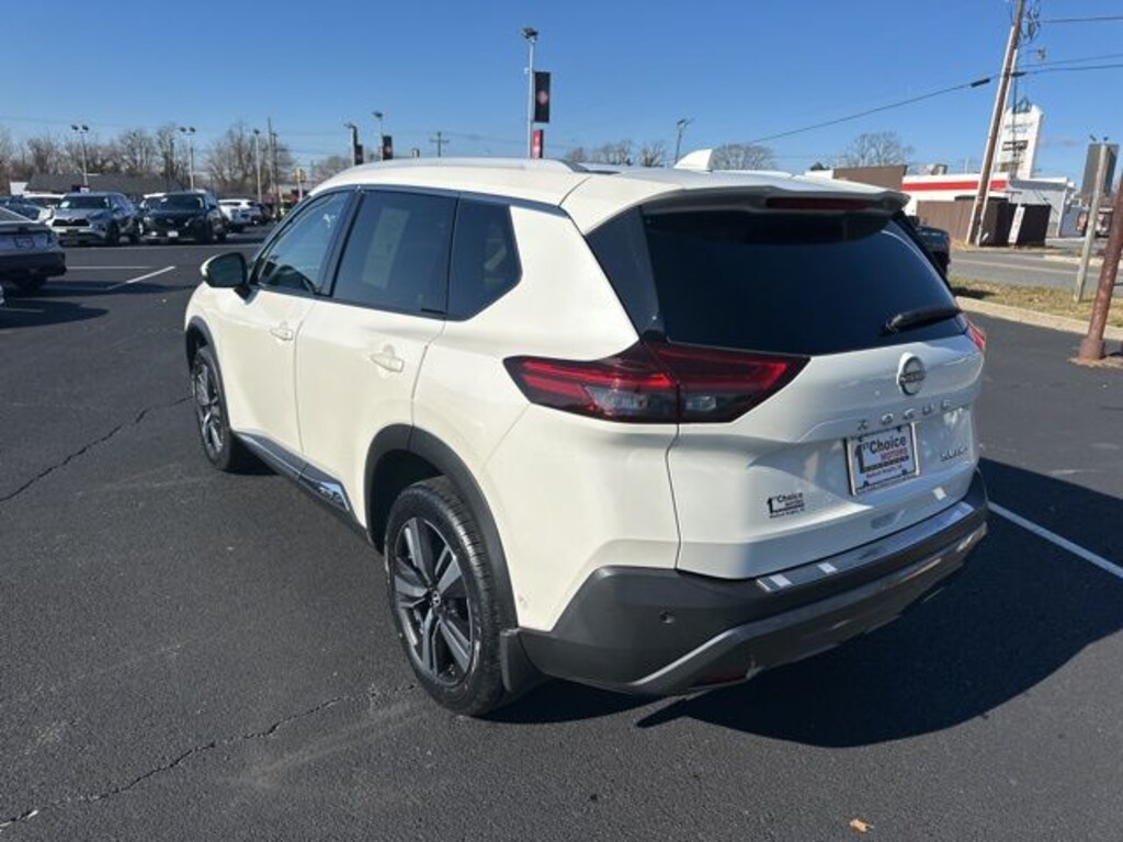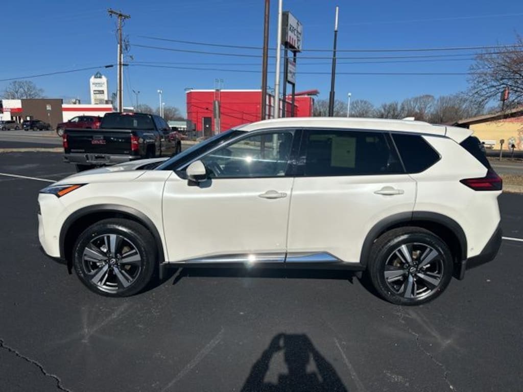 Recent Arrival! CARFAX One-Owner. Clean CARFAX. This vehicle is located at 1st Choice Motors. 4799 S Amherst Hwy, Madison Heights, VA 24572., AWD, Bose Premium Audio System, Front, Side & Rear Sonar, Motion Activated Power Liftgate, ProPILOT Assist w/Navi-link, Radio: AM/FM NissanConnect w/Navigation, Rear Door Sunshades, SL Premium Package, Traffic Sign Recognition, Tri-Zone HVAC. Pearl White Tricoat 2023 Nissan Rogue SL AWD CVT with Xtronic 1.5L I3 Turbocharged DOHC 12V LEV3-ULEV50 201hp