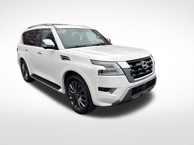 CARFAX One-Owner. Clean CARFAX. 4WD. Aspen White Tricoat 2024 Nissan Armada Platinum 4WD 7-Speed Automatic 5.6L V8 DOHC 32V LEV3-ULEV125 400hp